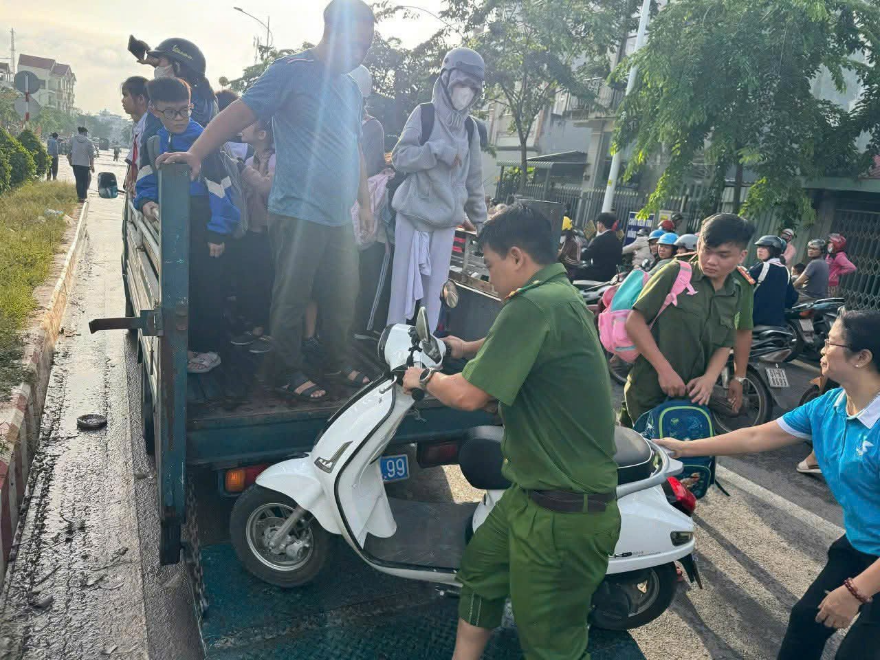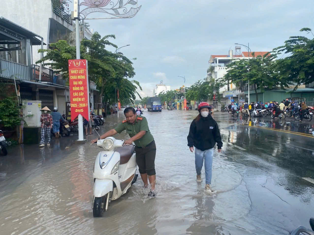 Cụ thể, ngày 23/10, do mưa lớn kéo dài, khu vực Cầu Quan, khu phố Cầu Quan, phường Long Nguyên (TP.HCM) bị ngập sâu. Ngay khi nắm bắt tình hình, lãnh đạo phường đã nhanh chóng chỉ đạo triển khai các phương án phòng, chống thiên tai; huy động lực lượng Công an phường, Ban Chỉ huy Quân sự phường phối hợp cùng Đội Cảnh sát Giao thông khẩn trương có mặt tại hiện trường hỗ trợ người dân.
