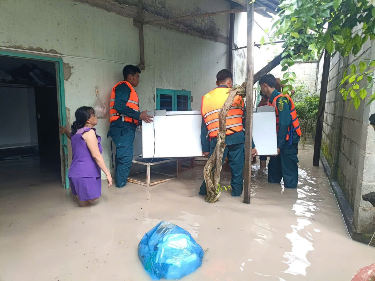 Lực lượng chức năng hỗ trợ người dân di dời đồ đạc, vật dụng thiết yếu, đồng thời hướng dẫn người dân đến nơi an toàn.