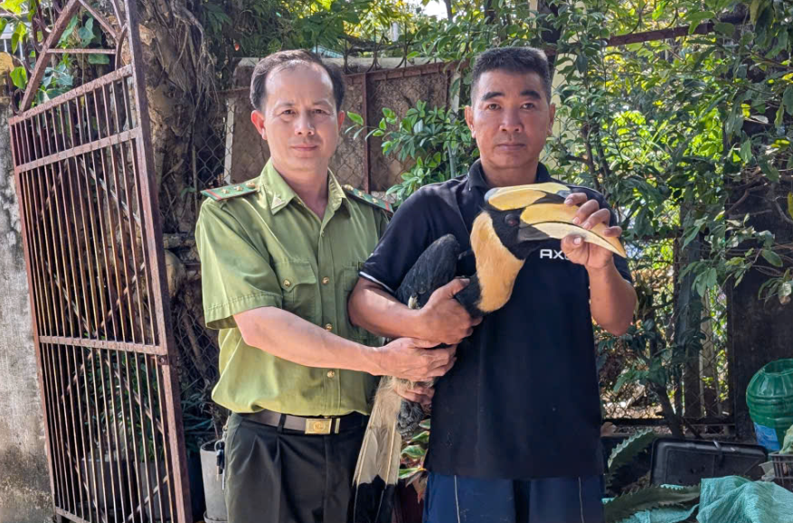 Theo Chi cục Kiểm lâm, đây là chim hồng hoàng trống, nặng khoảng 2,7 kg, có tên khoa học Buceros bicornis, thuộc nhóm IB trong Danh mục loài nguy cấp, quý, hiếm được ưu tiên bảo vệ theo Thông tư 27 của Bộ Nông nghiệp và Môi trường.