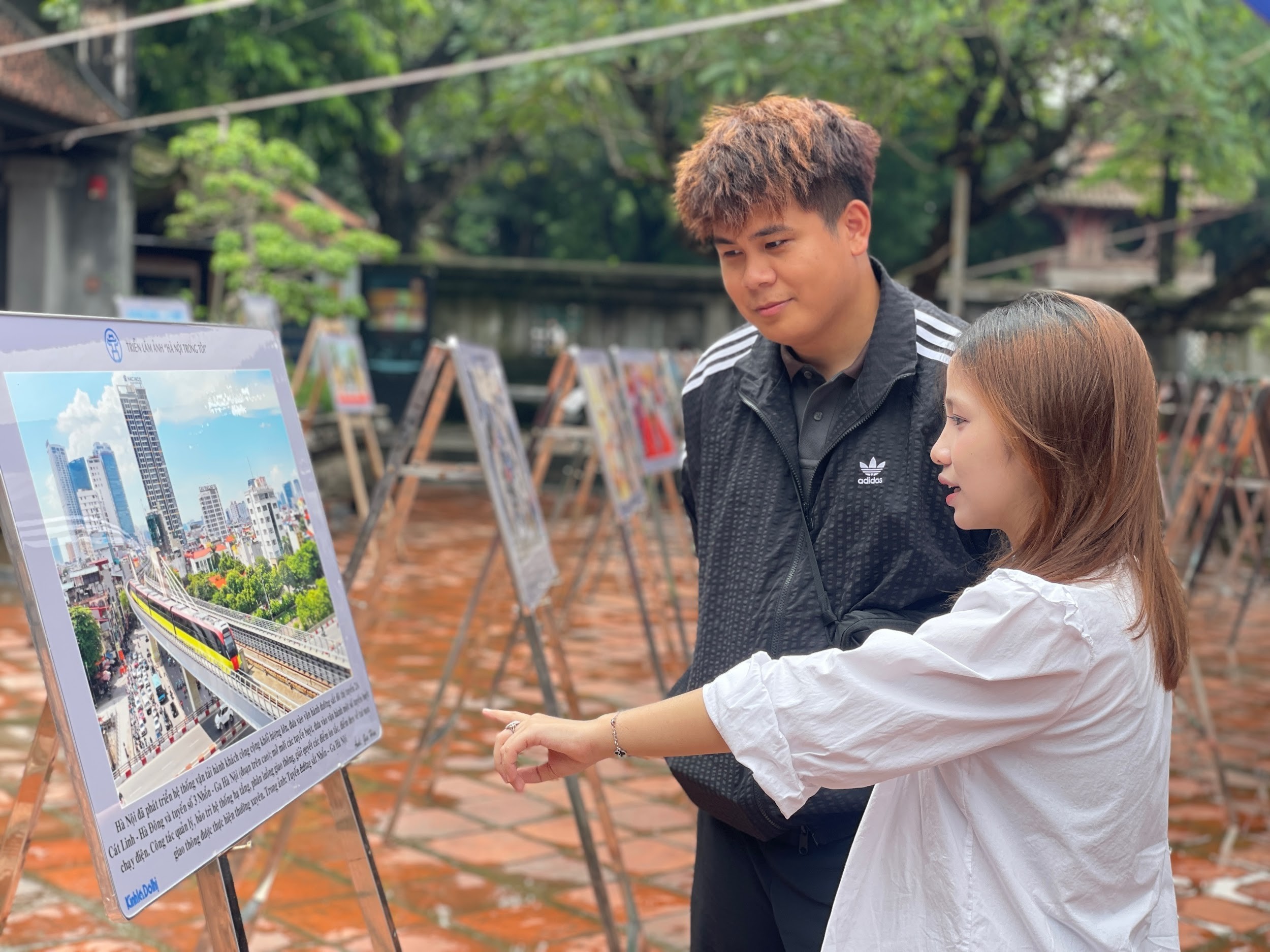Đến triển lãm từ rất sớm, Thu Trang (20 tuổi) dừng lại rất lâu trước mỗi bức ảnh. Trang chia sẻ: "Được biết thông tin về triển lãm, em háo hức vô cùng. Em cùng các bạn muốn đến đây để chiêm ngưỡng diện mạo của Thủ đô, về sự chuyển mình của Hà Nội trong kỷ nguyên mới. Từ đây, chúng em có thêm động lực để rèn luyện, học tập, cùng đóng góp cho sự phát triển của Thủ đô".