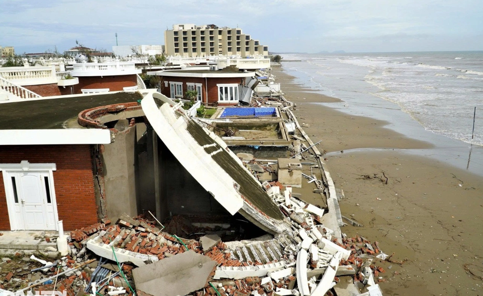 Mưa lớn, gió giật mạnh trong bão số 10 đã khiến hàng chục ngôi nhà ven biển của người dân Hà Tĩnh bị hư hỏng nặng. (Ảnh: DN).