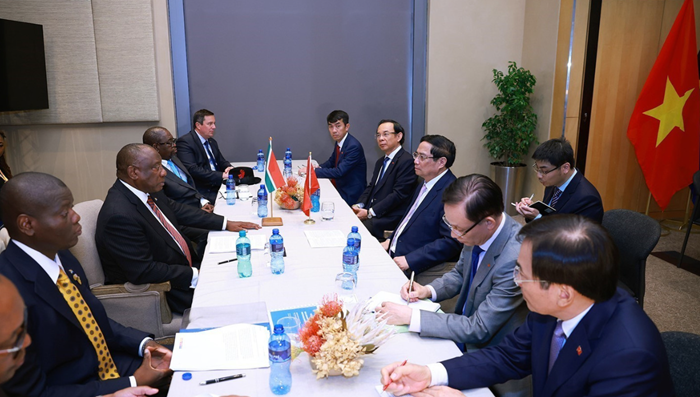 Tại Johannesburg (Nam Phi), Thủ tướng Chính phủ Phạm Minh Chính vừa hội kiến Tổng thống Nam Phi Cyril Ramaphosa (trong khuôn khổ chuyến công tác tham dự Hội nghị thượng đỉnh G20).