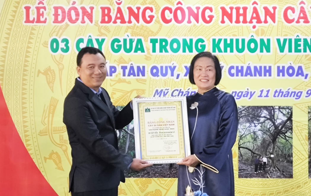 Thừa uỷ quyền của Hội Bảo vệ Thiên nhiên và Môi trường Việt Nam, ông Lê Chí Linh đã trao Quyết định, Bằng công nhận Cây Di sản cho địa phương.