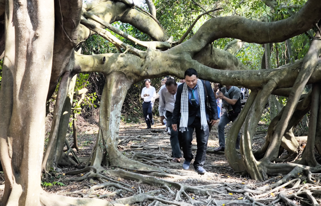 Các đại biểu chụp ảnh lưu niệm dưới gốc Cây Di sản.