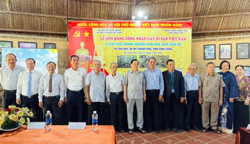 Cụ thể, UBND xã Mỹ Chánh Hòa (tỉnh Vĩnh Long) vừa long trọng tổ chức Lễ đón Quyết định và Bằng công nhận đối với 03 cây gừa trong khuôn viên Nông trại Hải Vân – Sân chim Vàm Hồ (ấp Tân Quý, xã Mỹ Chánh Hòa) và 2 cây đa (tại miếu Bà ấp Giồng Sao và miếu Bà ấp Giồng Trôm thuộc xã An Hiệp) là Cây Di sản Việt Nam.