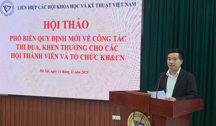 TMO - Sáng ngày 14/11/2025, tại Hà Nội, Liên hiệp các Hội Khoa học và Kỹ thuật Việt Nam (VUSTA) tổ chức Hội thảo “Phổ biến một số quy định mới về công tác thi đua, khen thưởng đối với các hội ngành toàn quốc và tổ chức khoa học – công nghệ”. Tham dự Hội thảo có đại diện Ban Tổ chức và Kiểm tra – Ủy ban Trung ương Mặt trận Tổ quốc Việt Nam.