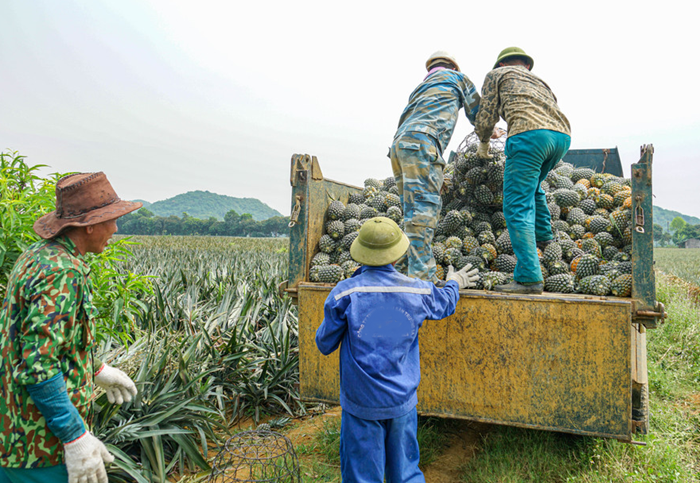 Người trồng thu hoạch dứa.